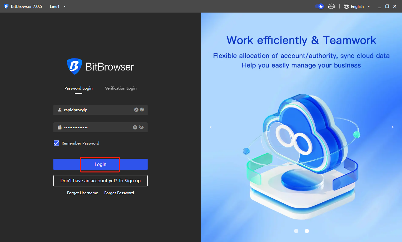 启动 BitBrowser 应用程序，点&#x51FB;**【Login/登录】**&#x4EE5;访问你的账户。