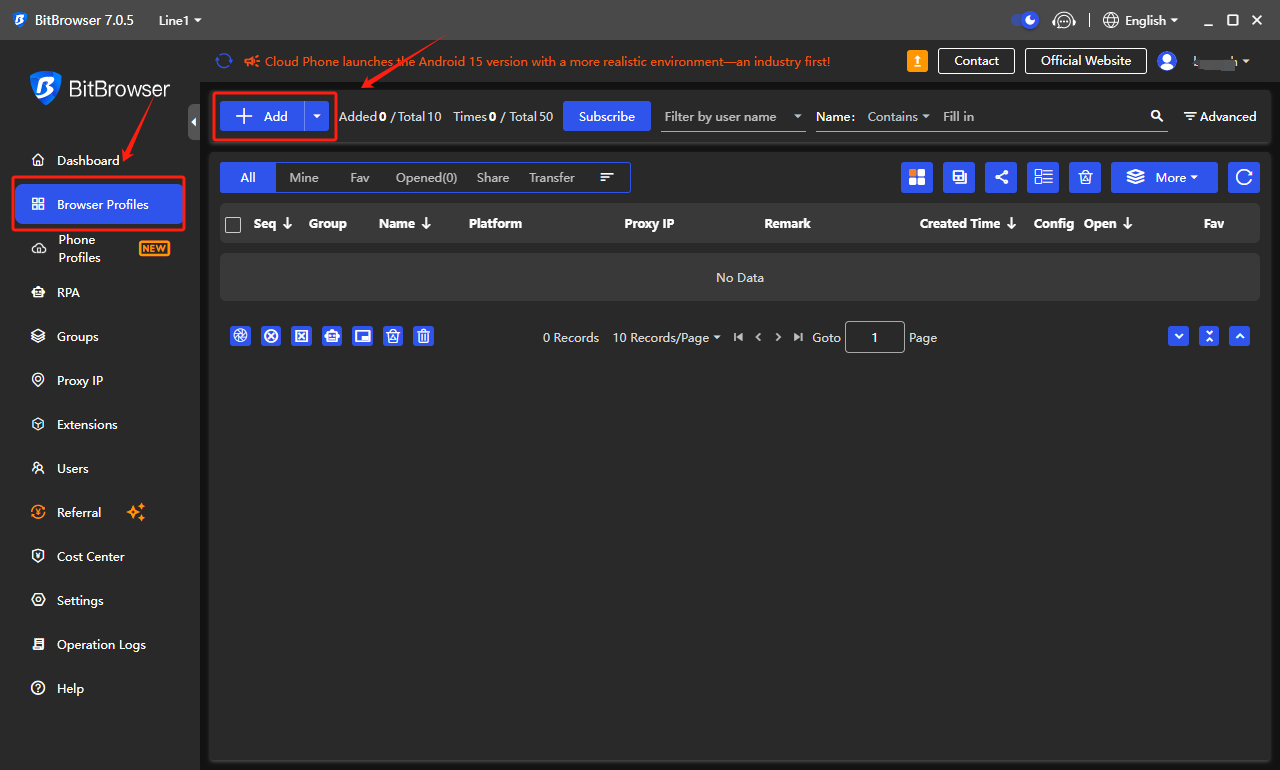 进&#x5165;**【Browser Profiles/浏览器配置文件】**&#x90E8;分，点&#x51FB;**【+Add/+ 添加】**，为你的代理设置创建一个新的浏览器配置文件。