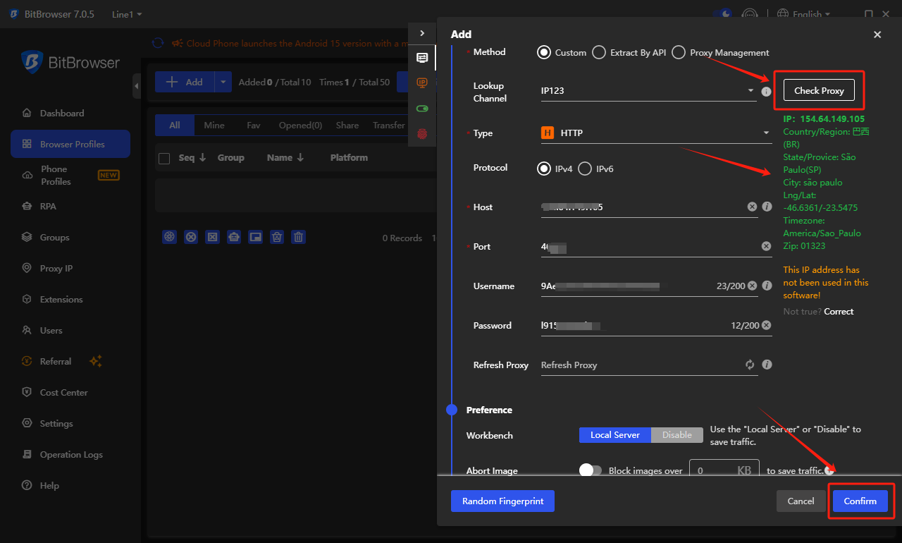 ### **步骤 2：在 BitBrowser 中配置代理**