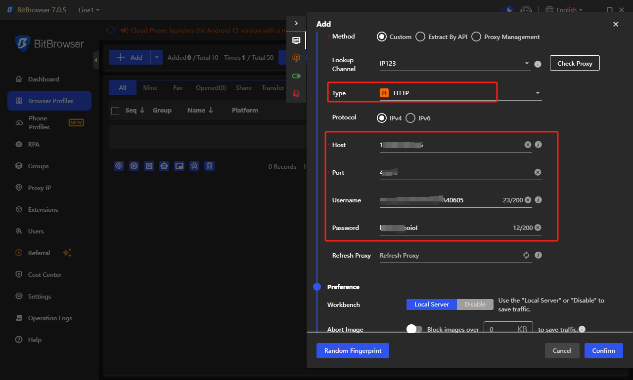 * 复制 Rapidproxy 提供的代理信息（包括 IP 地址、端口、用户名和密码），并粘贴到 BitBrowser 的相应字段中。
